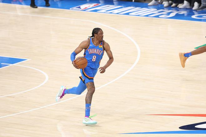 阵容中另外两位通过交易获得的球员是前面提到的肯里奇-威廉姆斯和亚历克斯-卡鲁索——他们是普雷斯蒂模式下的经典实干者(就卡鲁索而言,这是雷霆在威斯布鲁克时代放走他后的“重新来过”)。雷霆队还淘到了:一枚靠后的选秀签(2021年第54顺位的阿隆-维金斯)、一次认领裁掉球员(2022年的以赛亚-乔)、一位落选秀(2019年的多特)以及一笔用于配平薪资的交易添头(2020年的肯里奇-威廉姆斯)。这些球员中没人拥有40英寸(约102厘米)的垂直弹跳,也没有人能在热身上篮时让球探垂涎欲滴。